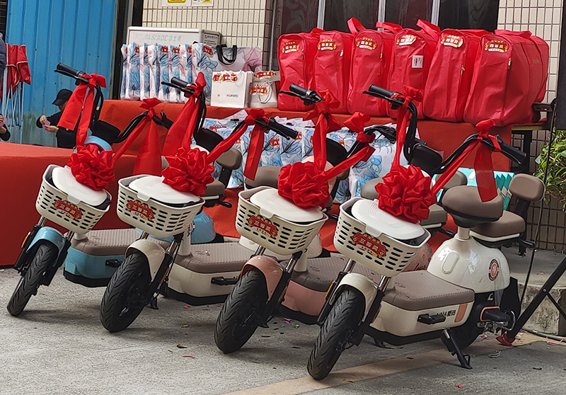 獎品涉及空調被、四件套、羊毛被、電動車、華為手機、黃金手鏈、華為折疊手機,