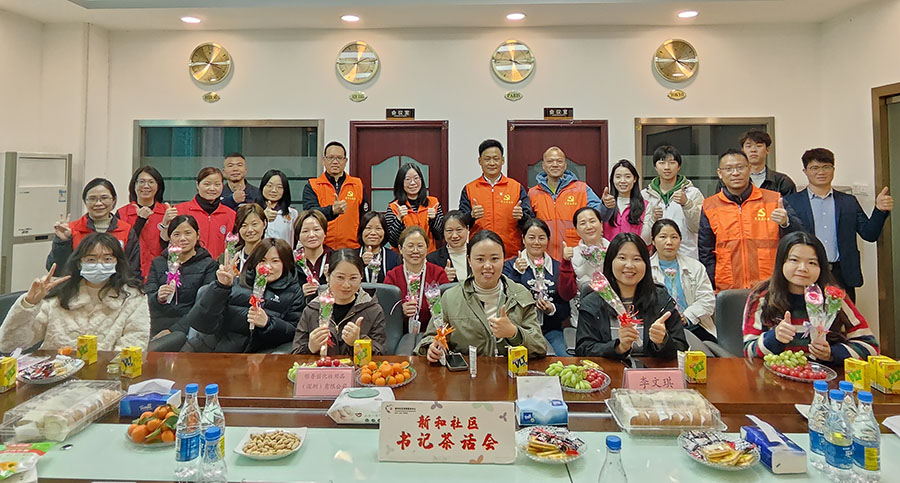 活動臨近尾聲,社區黨委班子手捧精心準備的針織手工花,為午夜小视频在线观看的女性代表送上節日的祝福,嬌豔的手工花映襯著她們如花的笑靨。最後全體人員一同合影留念,此時此刻定格成一幅幸福美好的畫卷。接下來,新和社區將持續深化“親鄰”服務,以實際行動護衛企業發展的“星辰大海”。